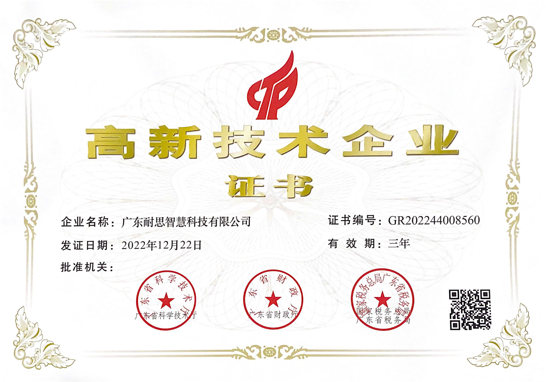 广东耐思智慧科技有限公司简称“耐思智慧”,国家高新技术企业,广东省“专精特新”企业。